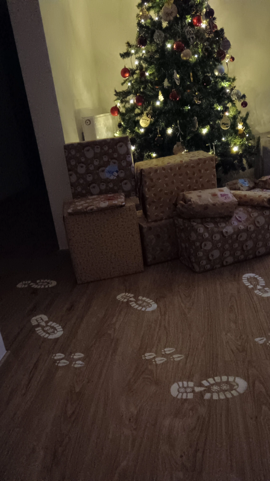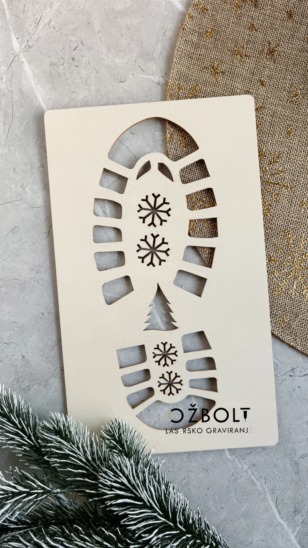 Šablona za Miklavža, Božička ali dedka je uporabna obojestransko. Za nanos lahko uporabite moko, sladkor v prahu, kakav..
