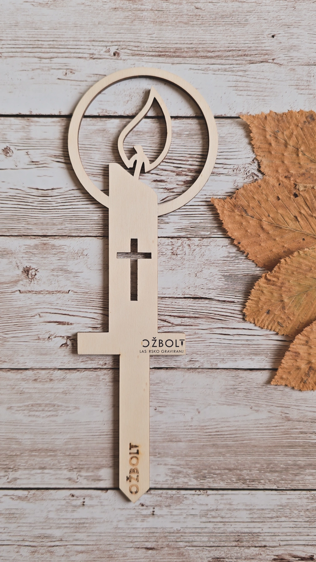 Lesena svečka je izdelana iz lesa. Primerna je za zapik v zemljo, pesek, vazo ali ikebano. Je popolnoma razgradljiva. Na prostem zdrži od 6-8 mesecev.