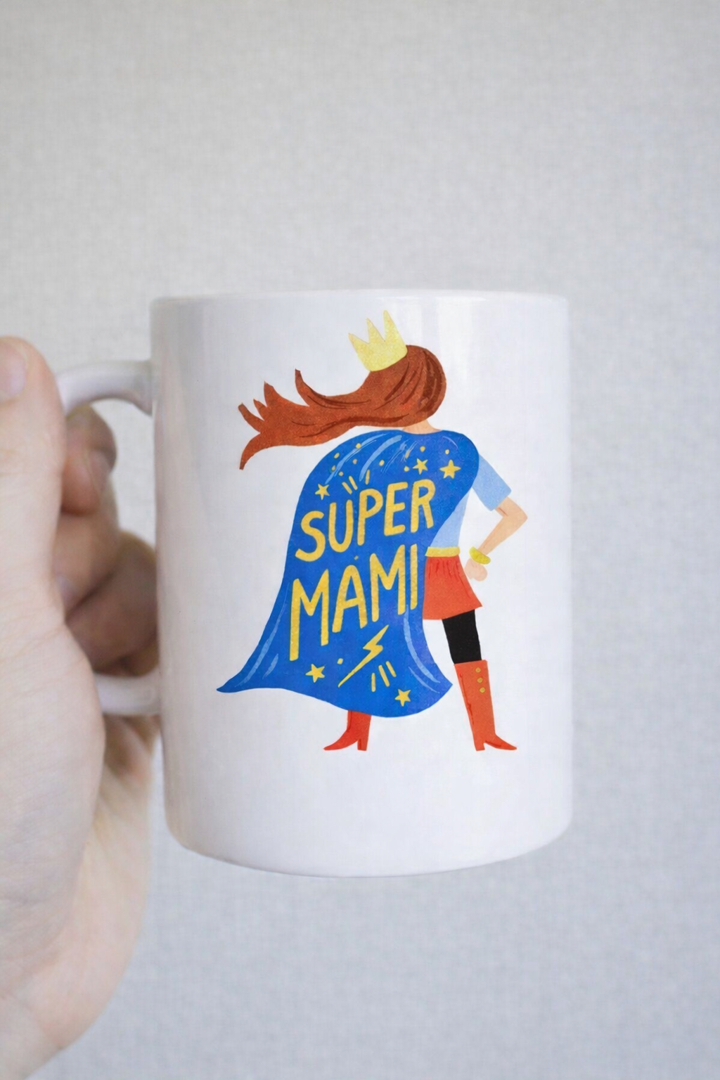 Skodelica bele barve z potiskom in prostornino 325ml. Primerna za pranje v pomivalnem stroju.