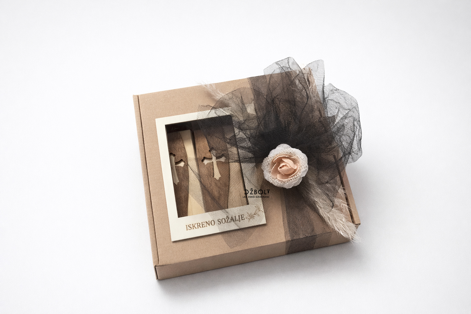 Žalni komplet vsebuje 4 smrekove svečke z plameni in darilno škatlo z dekoracijo.